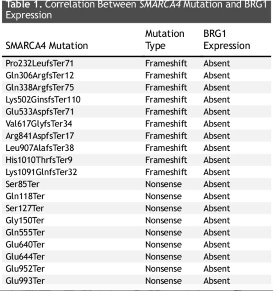 SMARCA4(BRG1)基因突變和蛋白表達(dá)