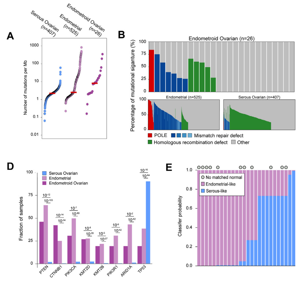 約15%的卵巢癌與生殖細(xì)胞基因突變相關(guān),其中以BRCA1和BRCA2基因改變最為常見。然而,BRCA1/2基因突變在子宮內(nèi)膜樣卵巢癌中較為罕見,發(fā)生率僅為5%-10%,且主要見于高級別漿液性癌。TP53基因突變在高級別漿液性癌中普遍存在,而在子宮內(nèi)膜樣卵巢癌中的發(fā)生率約為25%,且與更高的基因組不穩(wěn)定性相關(guān)。